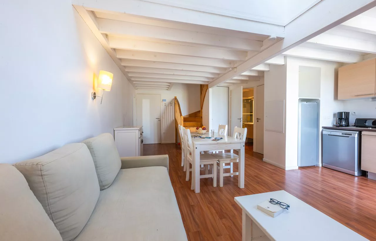 Kitchenette équipée (réfrigérateur avec compartiment congélateur, plaque vitrocéramique, micro-ondes/gril, lave-vaisselle 10 couverts, cafetière électrique, bouilloire) .