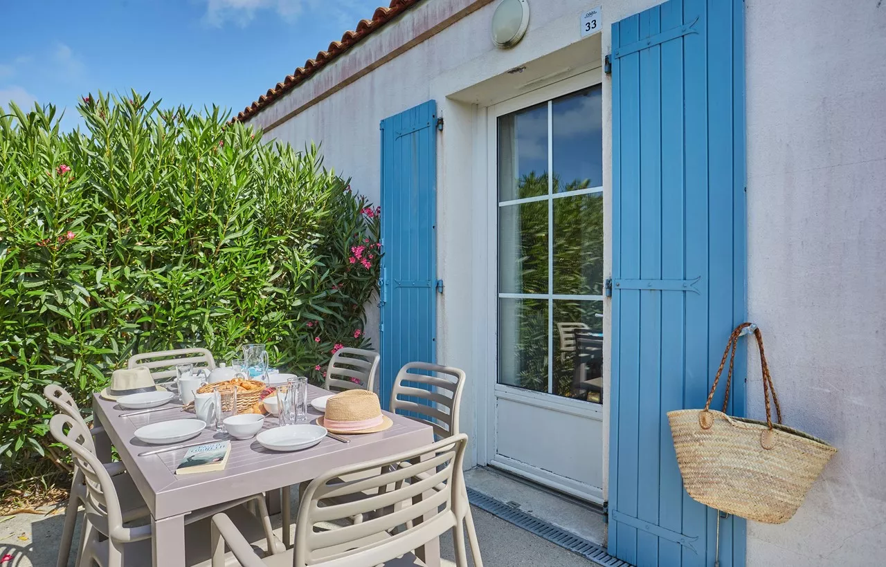 Maisonnettes de plain-pied et ouvertes sur une terrasse, à quelques minutes en vélo de la plage ou du centre de Saint Pierre d' Oléron.
