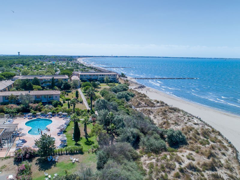 Idéalement située à quelques pas de la plage, la résidence se compose de 3 petits ensembles de 2 et 3 niveaux (pas d’ascenseur) et de style camarguais blottis dans un domaine paysager aux essences méditerranéennes de 3 hectares.