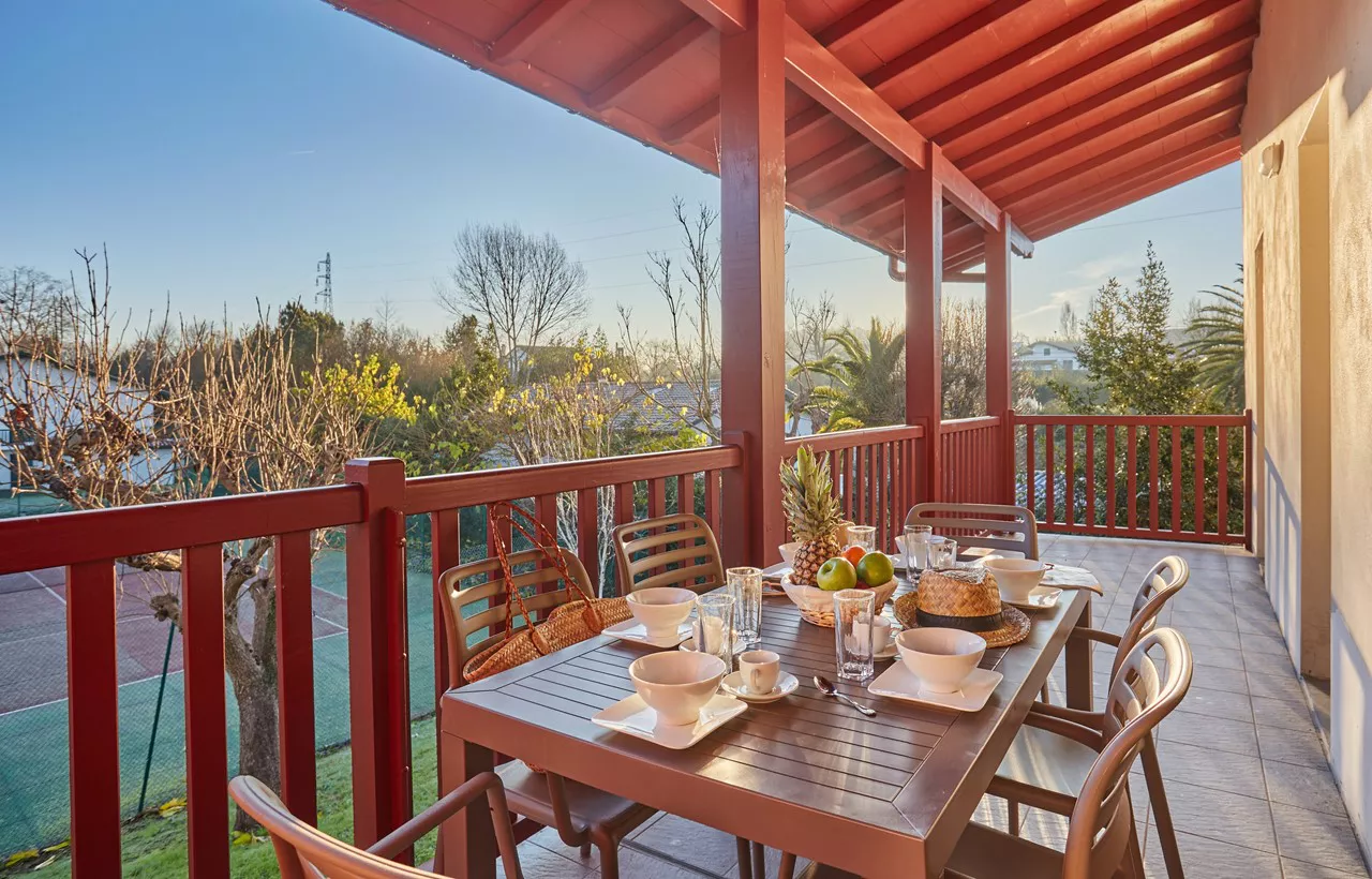 Terrasse avec mobilier de jardin.